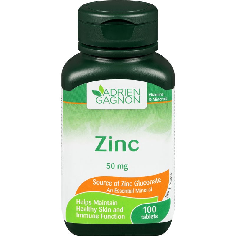 Adrien Gagnon Zinc 50mg is a mineral supplement that contributes to the maintenance of good health and helps the formation of connective tissue. This supplement is essential for healthy skin and helps the body metabolize carbohydrates, lipids, and proteins. It also helps maintain immune functions and prevents zinc deficiencies.