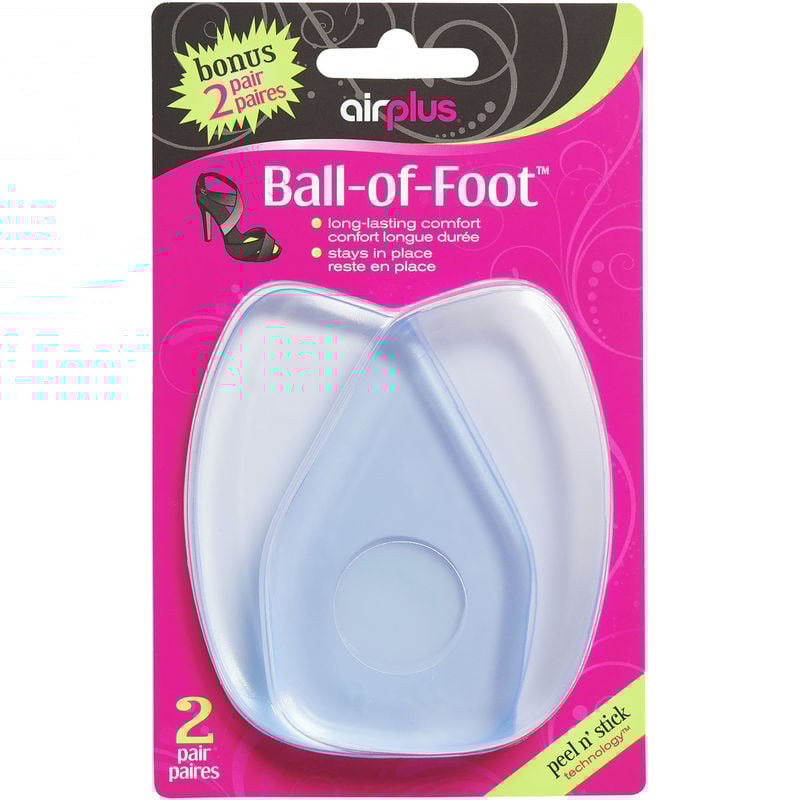 Experience lasting comfort with Airplus Gel Ball Of Foot Cushion. These clear and invisible cushions are designed to provide additional cushioning in the forefoot while also improving overall shoe fit. The adhesive backing keeps the cushion in place for secure comfort with every step you take. Perfect for open toe shoes and heels, these cushions also prevent your foot from uncomfortably sliding forward.