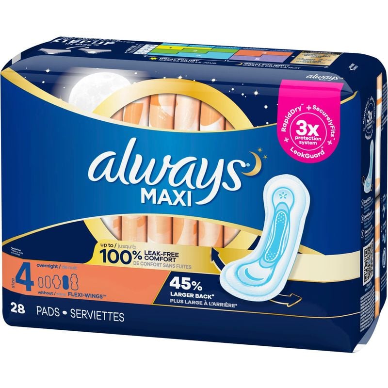 For best results, use the pad according to the instructions on the packaging. Always Maxi Pads Size 4 Overnight Absorbency Unscented with Wings are designed to provide up to 100% leak-free comfort, ensuring you wake up feeling fresh and confident.