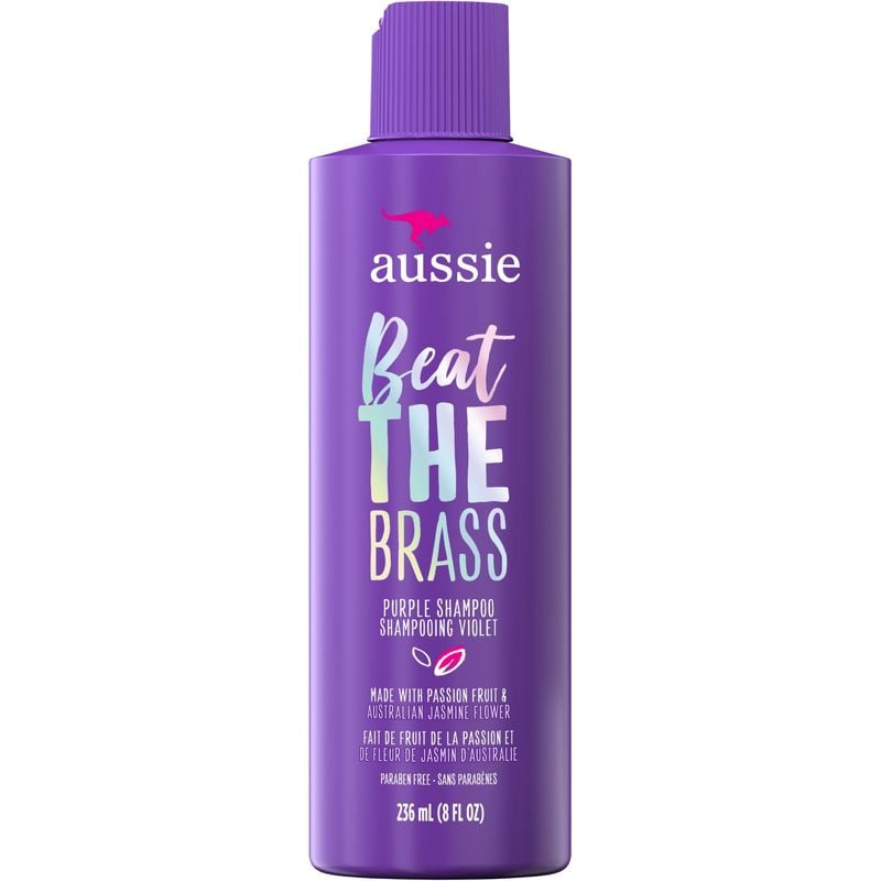Get rid of brassiness and bring balance to your blonde with Aussie Beat the Brass Purple Shampoo for Colour-Treated Hair. Whether you have natural or colour-treated blonde hair, this shampoo fights unwanted tones like yellows and oranges that creep into your brightest, most beautiful blonde.