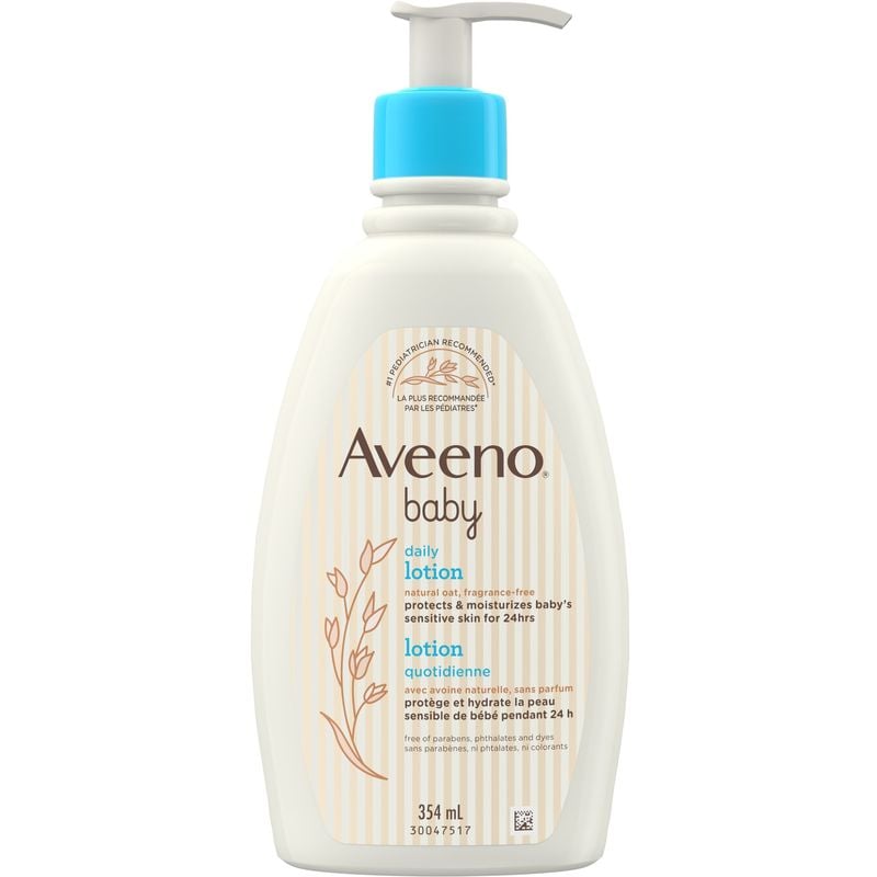 Introducing Aveeno Baby Lotion, Daily Moisturizing Cream 354 mL – the perfect solution to keep your baby’s delicate skin moisturized and protected for 24 hours. This naturally nourishing lotion is specially formulated with soothing colloidal oatmeal and dry-skin protectant to keep your baby’s skin soft and healthy.