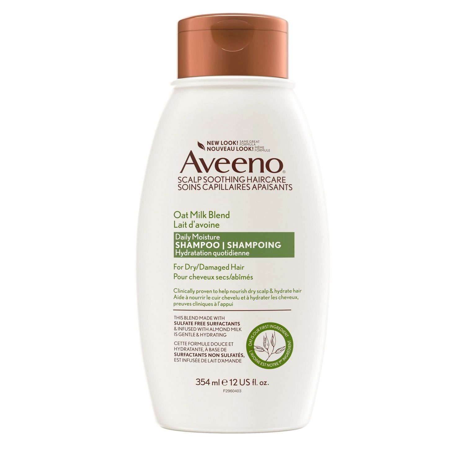Introducing the Aveeno Oat Milk Blend Shampoo for Daily Moisture. Experience the new look of this scalp-soothing haircare product that is formulated to nourish and hydrate your hair. With its oat milk blend and daily moisture formula, this shampoo is perfect for dry and damaged hair. Clinically proven to help nourish the scalp and hydrate the hair, it is the ideal solution for those seeking healthy and beautiful hair.