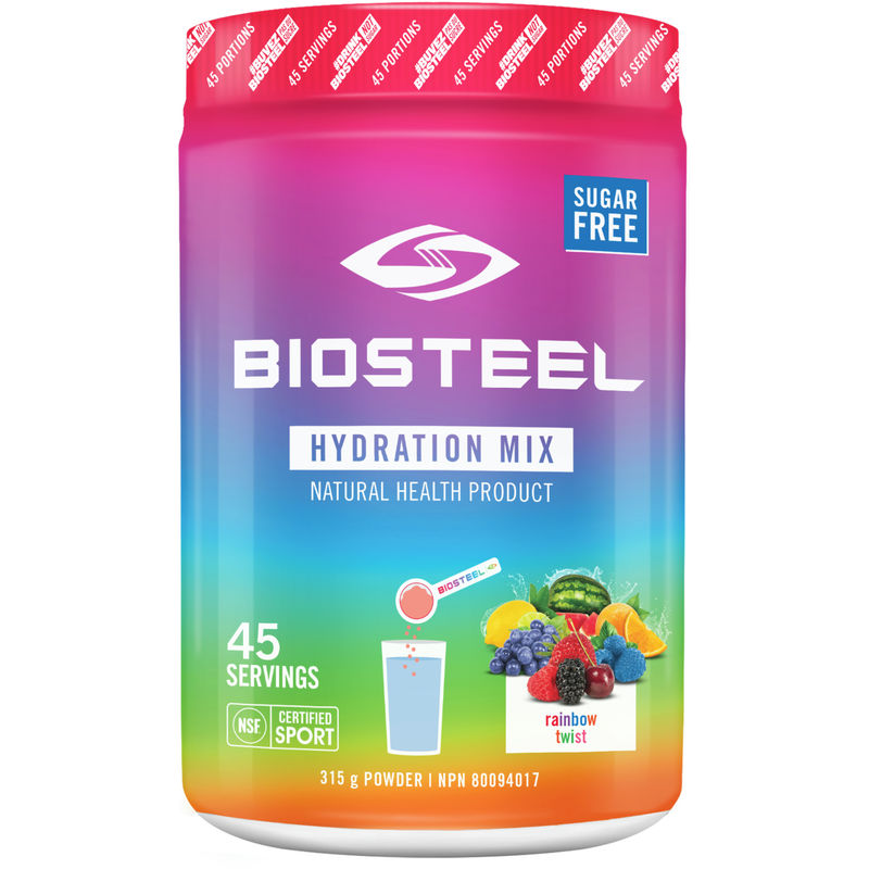 Stay hydrated and energized with Biosteel Hydration Mix Rainbow Twist 45sv. This sugar-free, natural health hydration mix is the perfect addition to your daily routine. With no artificial flavors, colors, sweeteners, or preservatives, this vegan mix is NSF certified for sport and caffeine-free, making it a safe and healthy choice for athletes and fitness enthusiasts alike.