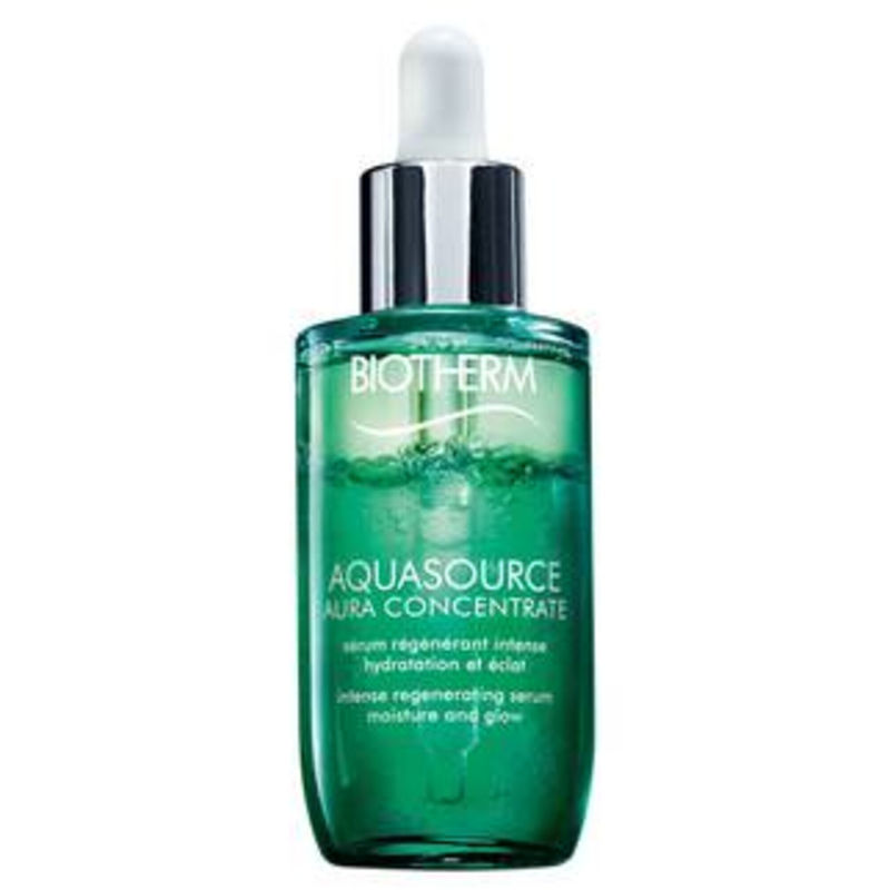 Experience 48-hour intense regenerating skin hydration with Biotherm Aquasource Aura Concentrate Serum for Dry and Extremely Dry Skin. This 90% natural bi-phase face serum is powered by the exclusive combination of a potent plant extract and patented regenerating probiotic Life Plankton, for refined and glowing skin in one application. The hydrating serum penetrates fast to intensely hydrate skin from deep within and to restore its natural ability to glow in 10 days.