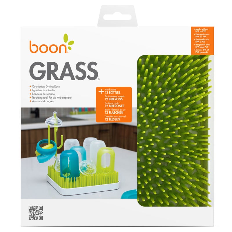 Dry all your baby accessories with the original Boon Boon® GRASS® Countertop Drying Rack. From bottles to pacifiers, this flexible drying rack holds items of all shapes and sizes and drains excess water into the lower tray. Its spring green color adds a fresh look to any countertop, while its natural design resembles blades of grass.