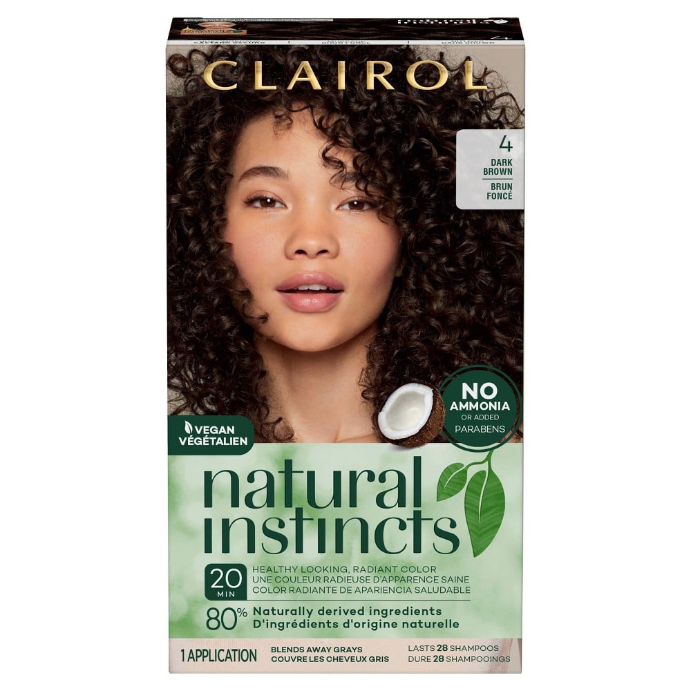 Discover your natural way to shine! Made with 80% naturally derived ingredients, the Clairol Natural Instincts gives you a rush of color you can feel good about.Features:Get a rush color and a boost of shine for radiant, healthy-looking hairNo-drip crme formula is designed to feel more like a conditioner, and it’s gentle on all hair types and textures.Their most gentle color to the hair, with 80% naturally derived ingredients! YES, coconut and aloe vera. NO ammonia or added parabens.Lasts 28 washes and blends away grays.