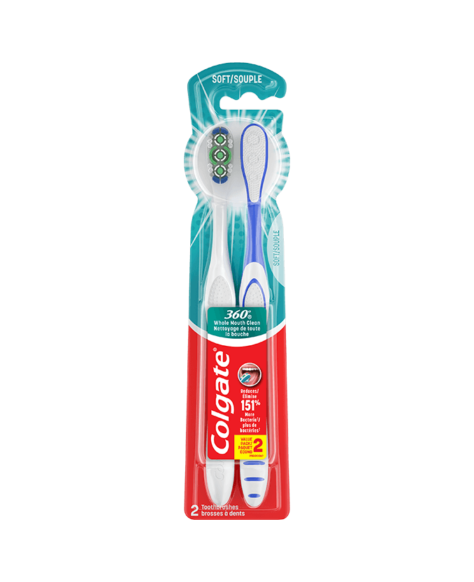 Introducing the Colgate® 360° Whole Mouth Clean Manual ToothbrushThe Colgate® 360° Whole Mouth Clean Manual Toothbrush is perfect for every type of smile. Its soft bristles and polishing cups work together to remove plaque and stains, while its cheek and tongue cleaner helps to reduce 151% more bacteria, providing a healthier whole mouth clean. The toothbrush features an ergonomic handle design that provides precise maneuvering when brushing, and is designed to reach all areas of your mouth, giving you a thorough cleaning experience every time. |