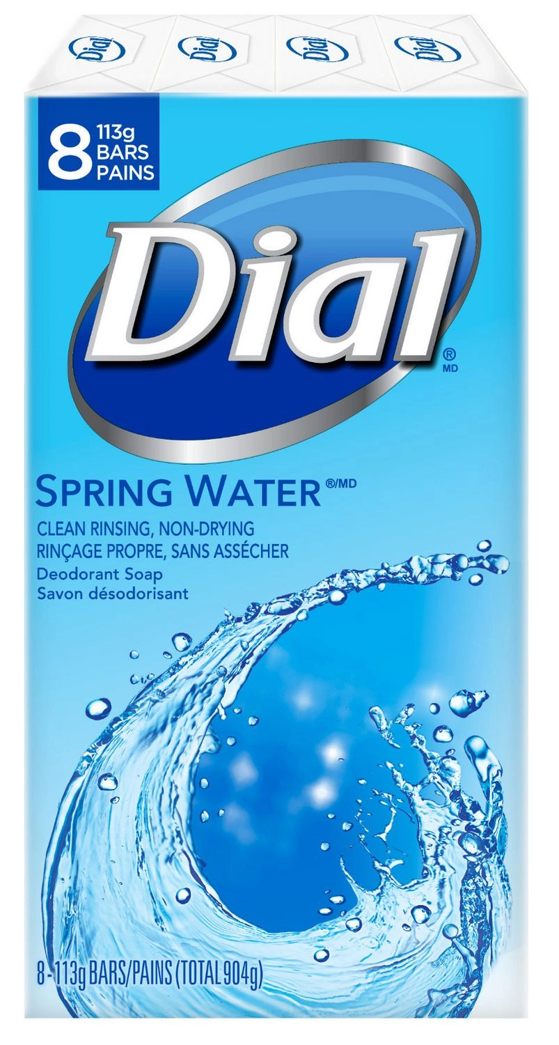 Upgrade your daily shower routine with Dial Deodorant Soap Spring Water. Its clean and refreshing formula will leave you feeling revitalized and ready to take on the day. Say goodbye to dry and dull skin, and hello to a fresh and moisturized complexion. Get your pack of 8 bars, each weighing 113g, for a total of 904g. Experience the invigorating clean of Dial Deodorant Soap Spring Water today!