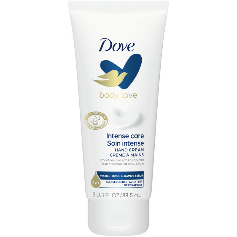 Show your body some love with Dove Body Love Intense Care Hand Cream. Infused with Restoring Ceramide Serum, this fast-absorbing, non-greasy formula provides long-lasting care for softer, smoother, healthier-looking skin with every application. Dermatologist-approved and cruelty-free, Dove Body Love Hand Cream is perfect for everyone.