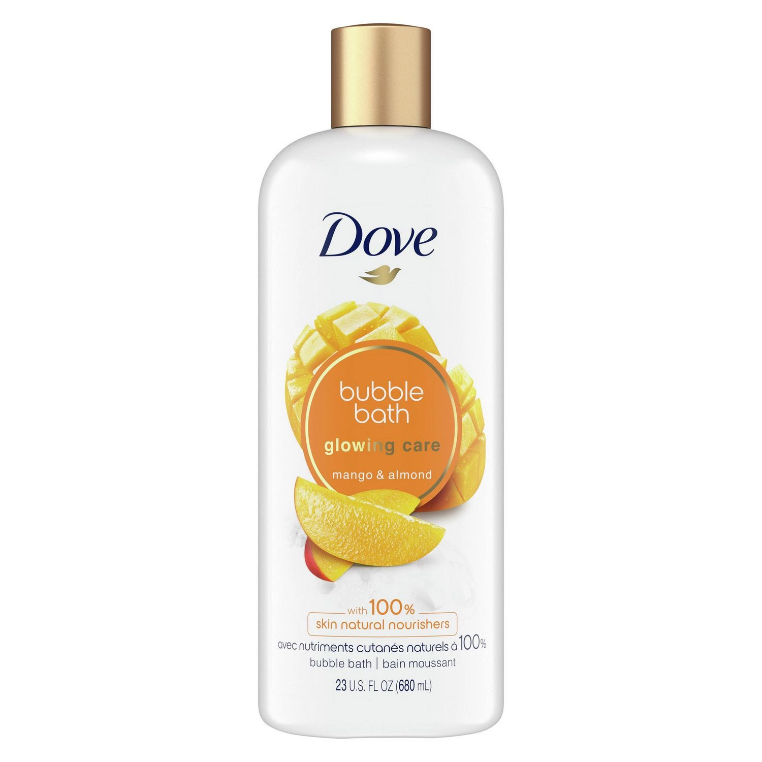 Experience the ultimate indulgence with Dove Mango & Almond Bubble Bath. This foaming bath soak is part of the Nourishing Secrets Glowing Care collection, designed to pamper your skin and senses. Immerse yourself in the tropical escape of its invigorating scent. Made with naturally derived cleansers and 100% skin natural nourishers, our formula is gentle on your microbiome, sulfate-free, and paraben-free.