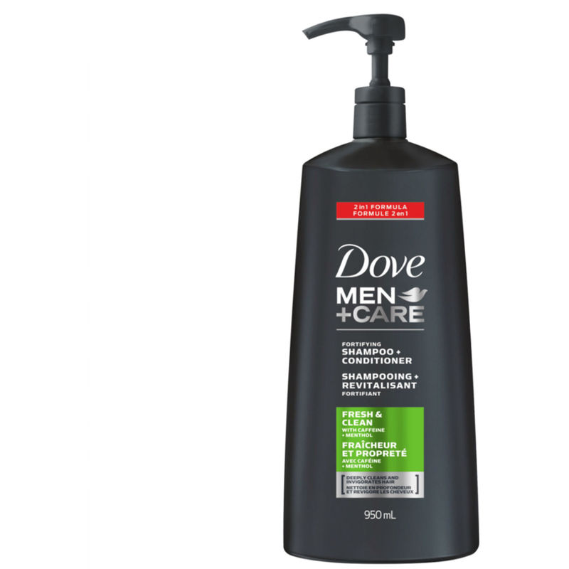 Dove Men+Care Fresh and Clean 2-in-1 Shampoo and Conditioner is designed specifically for men with fine and thinning hair, or concerned about hair loss. Infused with caffeine and menthol, this shampoo deeply cleanses and invigorates hair with a refreshing effect. Its dual 2-in-1 formula functions as a shampoo and conditioner so that it cleanses and conditions hair simultaneously, helping to keep up with men’s active lifestyles and everyday activities that can weaken hair and make it more prone to hair fall from breakage.