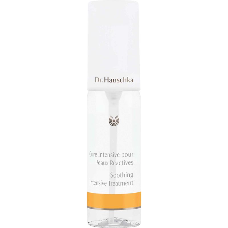 After cleansing, mist 4-5 pumps of Dr. Hauschka Soothing Intensive Treatment onto the face, neck, and décolleté, then gently press into the skin. Use for 28 days in place of Facial Toner or Sensitive Care Conditioner for optimal results. For intensive skin care, use once or twice a week with Clarifying Steam Bath, Clarifying Clay Mask, and Soothing Mask or Revitalising Mask.
