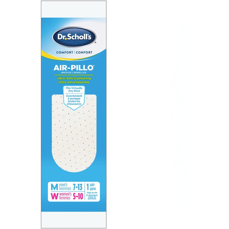 Say goodbye to discomfort during the day with Dr. Scholl’s Air-Pillo Insoles for men and women. These insoles are designed to provide ultra-soft cushioning and lasting comfort with two layers of foam. The top layer is shock-absorbing foam that bounces back time after time, while the bottom layer is Sure Grip Foam that stays in place with less wrinkling and bunching. These insoles fit virtually any shoe, so you can enjoy all-day comfort no matter what you’re wearing.