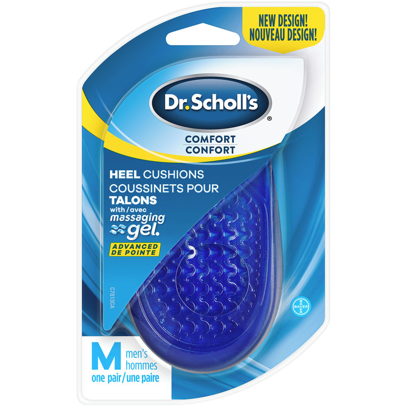 The Dr. Scholl’s Comfort Heel Cushions are made with Massaging Gel Advanced technology for cushioning and shock absorption.
