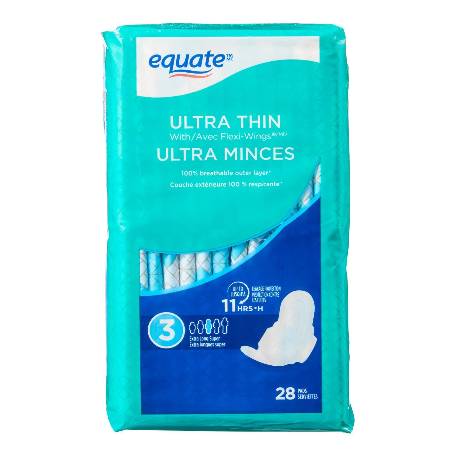 – Ultra-absorbent core: Equate pads are equipped with an ultra-absorbent core that quickly locks away fluid, preventing leaks and odors.