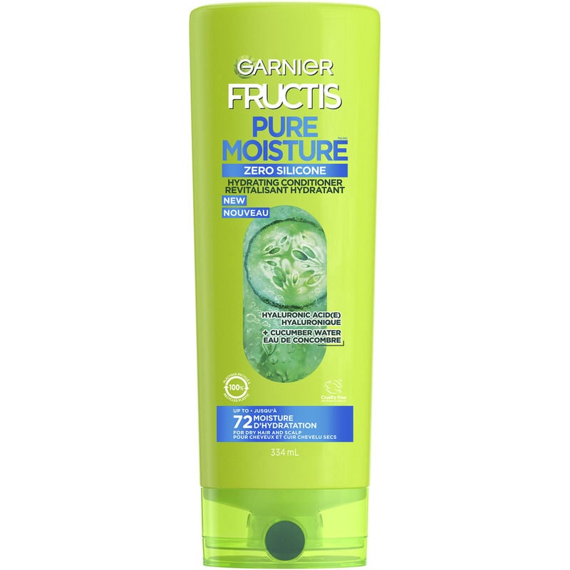 Introducing our new Fructis Pure Moisture Hydrating Conditioner, perfect for dehydrated hair and scalp. Our lightweight, silicone-free formula provides up to 72 hours of hydration for softness and shine from root to tip. Infused with Cucumber Water and Hyaluronic Acid, this conditioner is the perfect solution for dry hair and scalp.