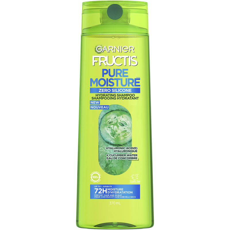 Introducing Fructis Pure Moisture Hydrating Shampoo, the perfect solution for dehydrated hair and scalp. Our new Pure Moisture system hydrates dry hair and scalp for up to 72 hours for softness and shine, from root to tip. Infused with Cucumber Water and Hyaluronic Acid, our lightweight silicone-free formula provides a deep boost of hydration with no residue and no weighdown.