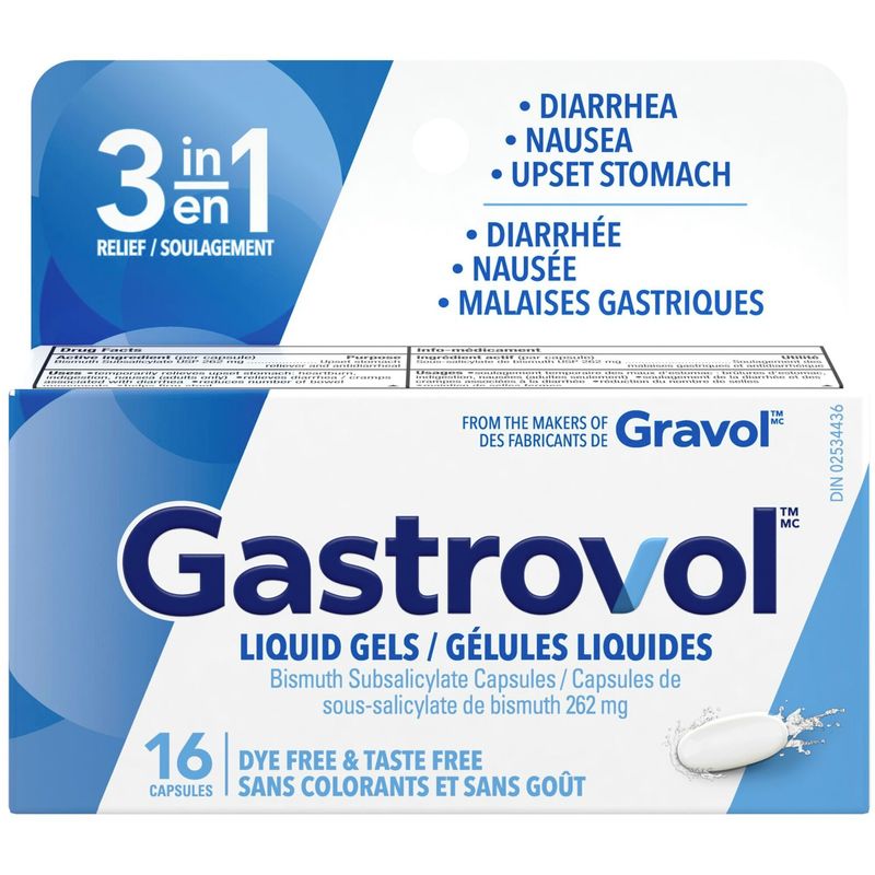 Get fast and effective relief from diarrhea, nausea, and upset stomach with Gastrovol Liquid Gels. These capsules are made by the creators of Gravol and provide a 3-in-1 relief solution. They are dye-free and taste-free, making them perfect for adults who need fast relief from digestive discomfort.
