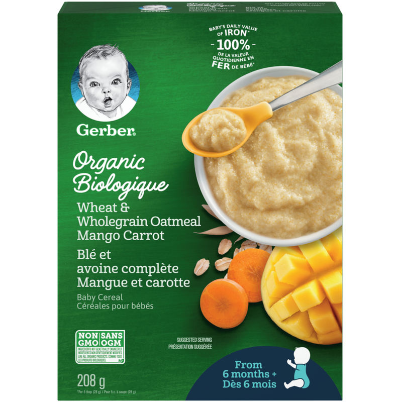 | Ingredients: | Organic whole grain oat flour, organic rice flour, organic dried mango, vitamin E, and iron. |