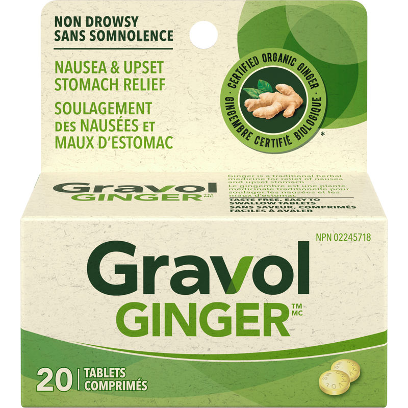 Gravol Ginger Non-Drowsy Tablets are the perfect solution for anyone looking to relieve upset stomach, nausea, and vomiting. Each tablet contains therapeutic levels of Certified Organic Ginger, a natural ingredient traditionally used in Herbal medicine to help relieve digestive upset. With easy-to-swallow, taste-free tablets, you can get effective, non-drowsy relief whenever you need it.