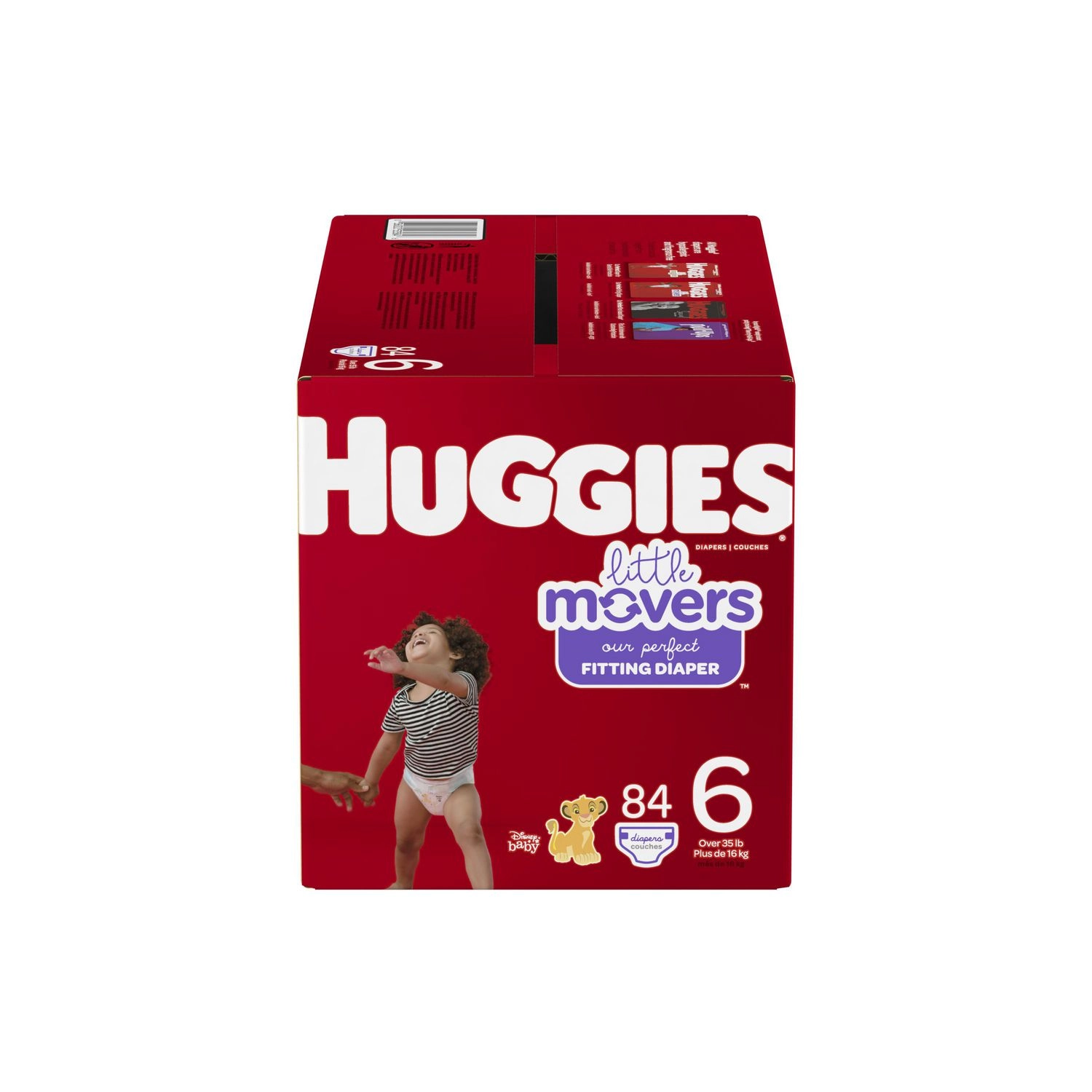 HUGGIES Little Movers Diapers are available in various sizes to accommodate your baby’s growth. Choose from size 3 (16-28 lb.), size 4 (22-37 lb.), size 5 (27+ lb.), size 6 (35+ lb.), and size 7 (41+ lb.). With their adorable Disney Lion King designs, these diapers are not only functional but also fun for your little one. Give your baby the freedom to move with confidence and comfort with HUGGIES Little Movers Diapers.