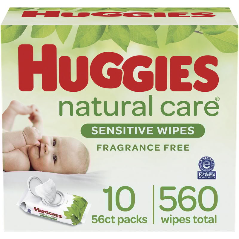- 10 flip-top packs of 56 Huggies Natural Care Sensitive Baby Wipes, Unscented (560 wipes total)