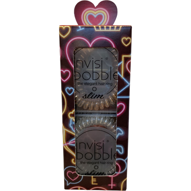 The Invisibobble Valentines Neon Love Duo Pack is the perfect tool for a stylish and comfortable hairdo. The pack includes 2 sets of 6 slim hair ties that promise to keep your hair securely up in a ponytail or bun, without leaving a bump in your hair after you take it out. The Invisibobble is a hair elastic that treats your scalp kindly, so you never remove a small clump of hair along with it.