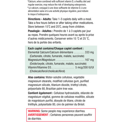 Calcium magnesium + vitamin d3 is a highly absorbable formula that combines calcium and magnesium at the optimal 2:1 ratio. It helps support strong bones and healthy muscle function, and may help reduce the risk of developing osteoporosis. ⢠helps maintain strong bones and healthy teeth ⢠helps prevent osteoporosis ⢠helps support healthy muscle function product information is provided by the product vendor. This content is a summary for informational purposes only and does not have all possible information about this product. It should not be used as a substitute for advice from health care professionals, as this information alone does not assure that this product is safe, effective, or appropriate for you. For more detailed information on this product, including reported and possible side effects and contraindications, refer to the manufacturer’s monograph, or speak with a health care provider.