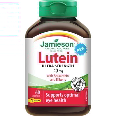 Lutein 40 mg ultra strength is fortified with zeaxanthin and bilberry for added antioxidant support. Lutein helps support the overall health you your eyes, preventing against age related macular degeneration and cataracts, as well as conditions related to sunlight damage. Product information is provided by the product vendor. This content is a summary for informational purposes only and does not have all possible information about this product. It should not be used as a substitute for advice from health care professionals, as this information alone does not assure that this product is safe, effective, or appropriate for you. For more detailed information on this product, including reported and possible side effects and contraindications, refer to the manufacturer’s monograph, or speak with a health care provider.