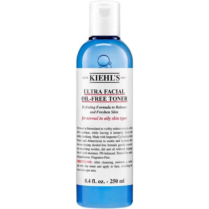Kiehl’s Ultra Facial Oil Free Toner is specially formulated for oily skin and normal skin. It is a non-drying gentle toner that helps reduce excess oil while removing dirt and oil. This alcohol-free facial toner soothes and tones your skin, leaving it fresher and healthier-looking. It is pH-balanced and tested for safety and gentleness.