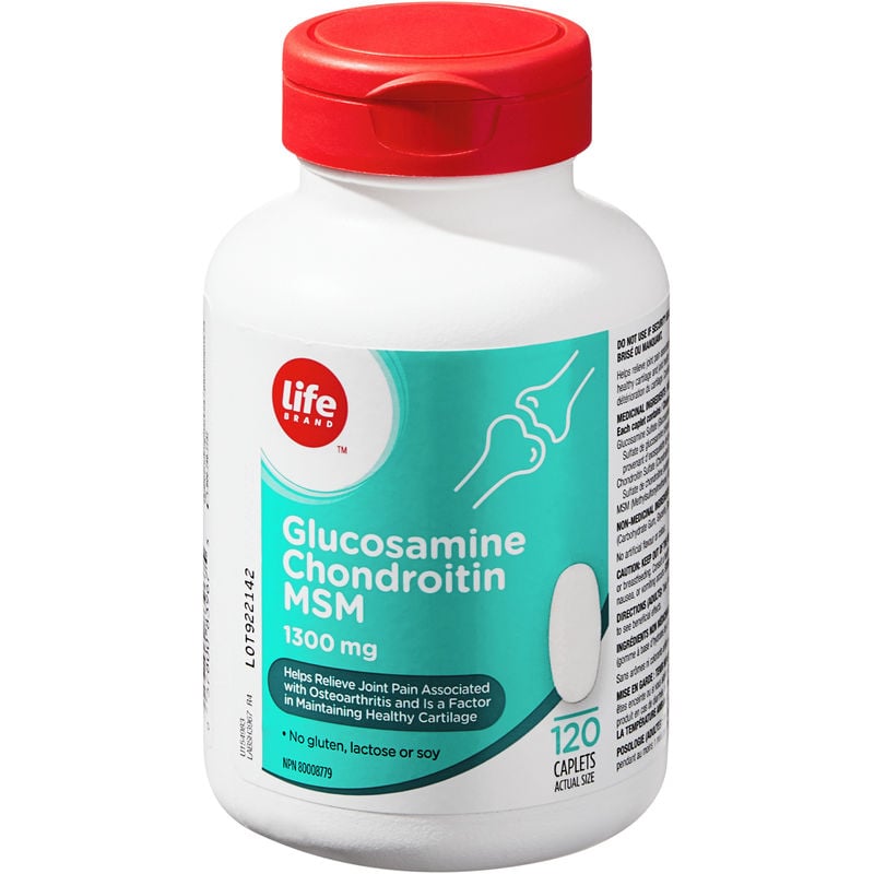 Life Brand Glucosamine Chondroitin MSM 1300mg 120 CPL is a natural supplement designed to help maintain healthy cartilage and joint health. It is specially formulated to relieve joint pain associated with osteoarthritis and protect against cartilage deterioration. This supplement is free from gluten, lactose, and soy, making it suitable for individuals with dietary restrictions. Each caplet contains a potent blend of glucosamine sulfate, chondroitin sulfate, and MSM, making it an effective supplement for joint health.