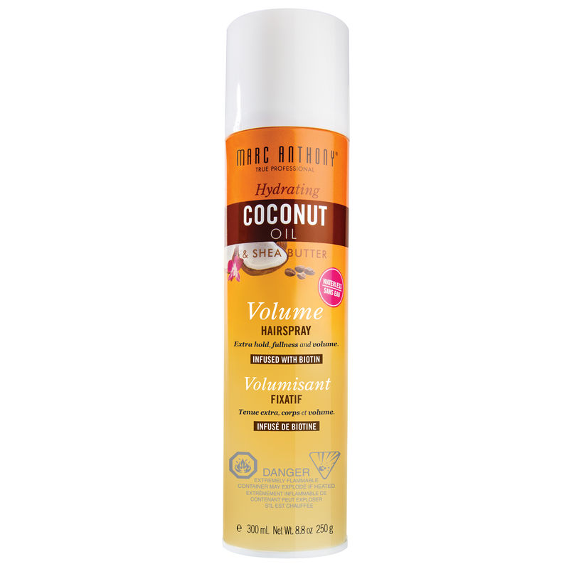 Get the volume, fullness, and shine you desire with Marc Anthony Hydrating Coconut Oil & Shea Butter Volume Hairspray. This waterless hairspray is perfect for those who want a non-sticky, non-flaking, and flexible finish. The fast-drying formula creates volume and hold without any crunch or heavy build-up. It is enriched with a light blend of Coconut Oil, Shea Butter, and Biotin to help retain hair’s moisture as you style. The hairspray also shields against humidity for longer-lasting styles. Sun Protectors keep the sun and other elements from damaging your full-bodied mane.