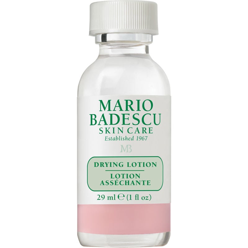 Using the Mario Badescu Drying Lotion Glass 29 mL is easy. Before bed (after cleansing and toning), dip a cotton swab into the pink sediment at the bottom of the bottle. Dab directly on the surface blemish; do not rub in. Let dry and rinse off in the morning. It is important to note that you should not shake the bottle, use on broken skin, or apply to the eye or lip area. If the product gets into your eyes, rinse well with water.