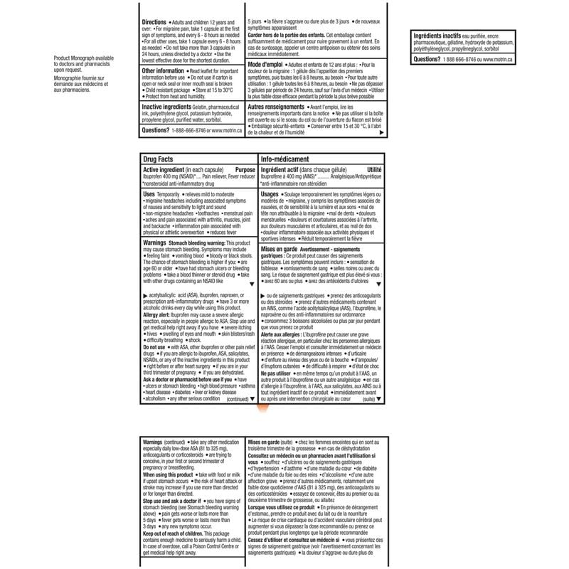 Motrin Super Strength Pain Relief Ibuprofen 400mg Liquid Gels provide fast and effective relief from everyday aches and pains. Each capsule contains 400 milligrams of ibuprofen, a powerful pain reliever and fever reducer.
