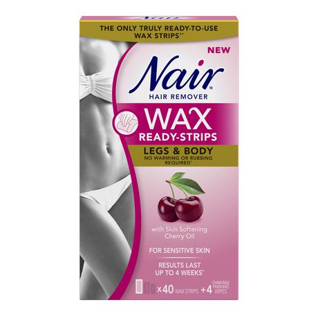 Nair Wax Ready Strips are our fastest, easiest wax strips ever with no warming or rubbing required**. Their rich formula is specially designed for hair on your legs and body. It uses the nourishing power of softening cherry oil to rejuvenate and moisturize, leaving you with glowing, hair-free skin. Nair Wax Ready Strips are an easy-to-use, affordable and mess-free solution to removing unwanted hair. Without any messy residue to clean up, your gorgeously smooth skin is ready to show off in minutes. This kit includes large size strips perfect for your legs and body. Simply apply the wax strip to your skin in the comfort of your own home–no need to take time out of your day for trips to the salon. Upon removal, the wax removes hair below the skin’s surface, leaving your skin smooth and radiant for up to four weeks.*** Easy to apply, and conveniently reusable, Nair wax strips are the fast, effective way to achieve long-lasting, radiant skin that’s deliciously soft to the touch. Features:Wax Ready Strips are ready right out of the box – no warming or rubbing required**Large size strips for hair on your body and legs Softening cherry oil rejuvenates and moisturizes skin Easy application and cleanup with no messy residue Removes hair for up to 4 weeks*****Tests performed at temperatures equal to 20C and above.***Individual results may vary.