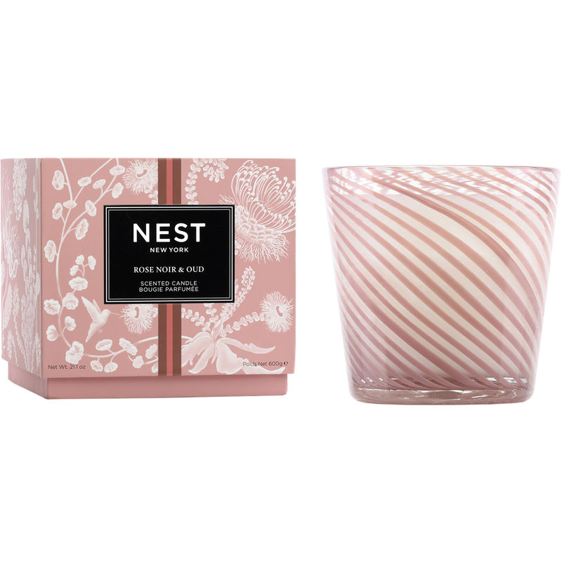 Create a sultry atmosphere with NEST Fragrances Rose Noir & Oud Specialty 3-Wick Candle. This exquisite candle is perfect for anyone looking to create a captivating ambiance in their home. The candle features captivating Rose de Mai blended with smoky oud, a hint of incense, black leather, and patchouli. The limited-edition hand-blown glass vessel is presented in a decorative box designed by acclaimed Los Angeles art studio MJ Atelier. The candle is meticulously crafted with a proprietary premium wax formulated so it burns cleanly and evenly and infuses the atmosphere with exceptional scent.