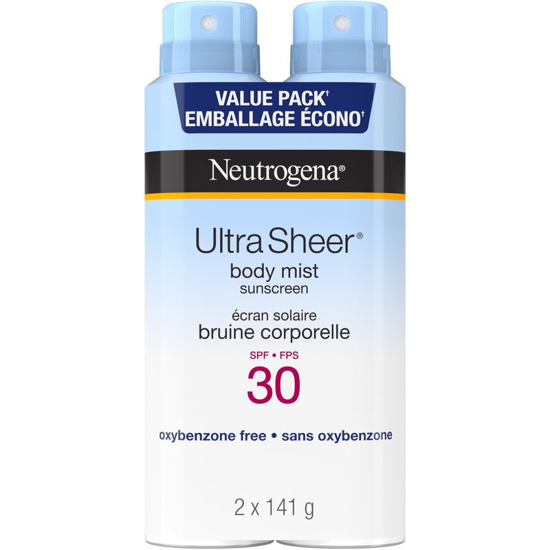 Protect your skin from the sun’s harmful rays with Neutrogena Ultra Sheer Body Mist Sunscreen Spray SPF 30. This duo pack includes two 141g bottles of weightless sheer mist sunscreen spray that provides effective broad-spectrum protection against the sun’s aging UVA and burning UVB rays. The ultra-light, non-greasy finish and easy-to-use spray bottle make it perfect for all your outdoor activities.