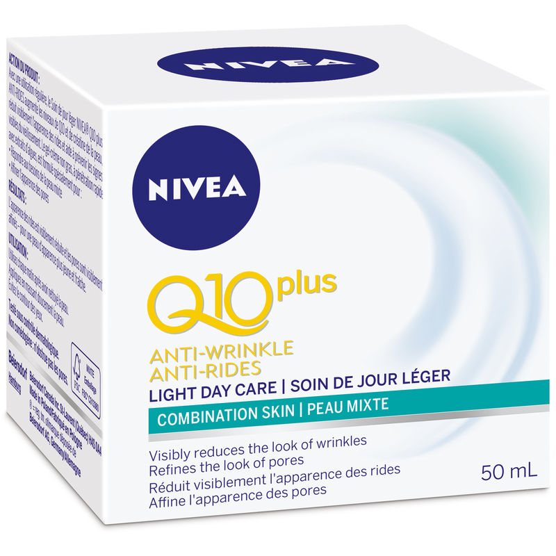 Get younger-looking skin with Nivea Q10 Power Anti-Wrinkle + Pore Refine Day Moisturizer. This non-greasy and fast-absorbing gel-cream visibly reduces the look of fine lines and wrinkles while refining the look of pores. Enriched with Algae Extract, it is non-comedogenic and dermatologically tested.