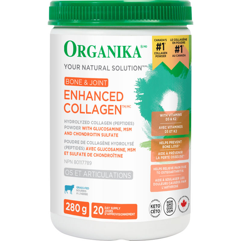 Organika Enhanced Collagen Bone & Joint 280 g is a complete blend of essential nutrients that work together to support healthy bones and joints. Hydrolyzed bovine collagen powder provides the building blocks for healthy bones, joints, skin, hair, and nails. Glucosamine chondroitin and chondroitin sulfate sodium help to protect and repair cartilage, while MSM supports joint health and reduces inflammation. Vitamin C, D3, and K2 work together to support bone health and prevent bone loss.