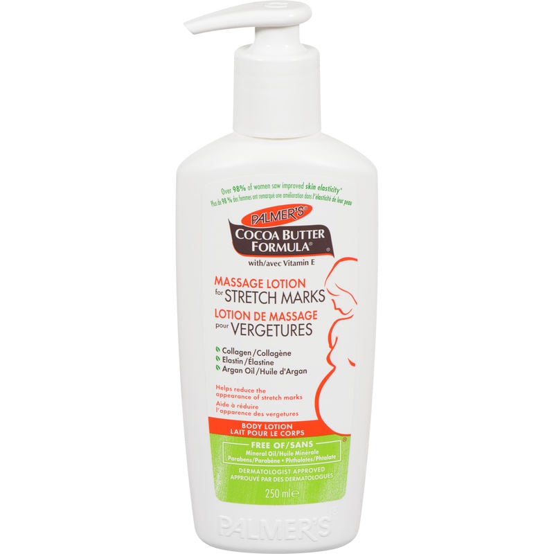 Apply Palmer’s Cocoa Butter Formula® Massage Lotion all over your skin, concentrating on stretch mark-prone areas such as the tummy, hips, thighs, and bust. Massage liberally into your skin twice daily for best results.