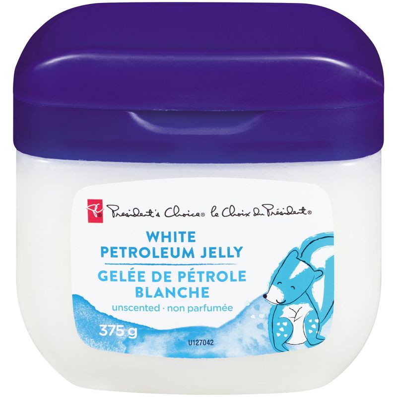 Introducing President’s Choice White Petroleum Jelly, the perfect solution to soothe and heal dry skin. Our hypoallergenic and dermatologist tested jelly is gentle on skin and locks in moisture to keep wetness out. Say goodbye to dry skin and hello to a healthy, moisturized glow.