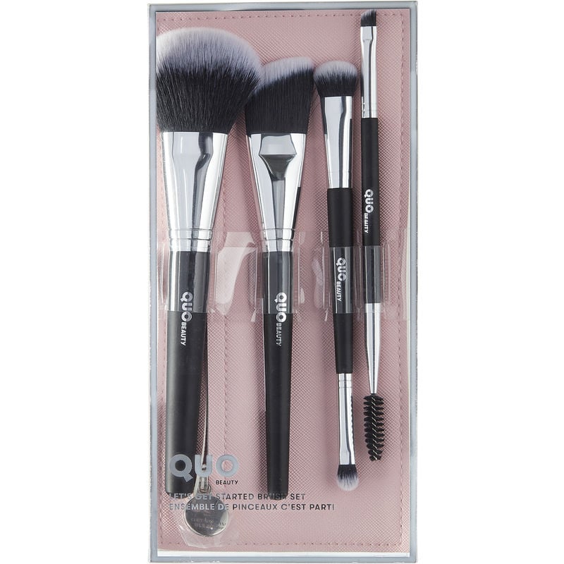 Get started with the Quo Beauty Let’s Get Started Brush Set. This set includes four must-have brushes with six different head shapes packed into a luxe pouch. Whether you’re a makeup pro or a beginner, this set will help you create stunning looks that redefine the face, eyes, and brows with ease.