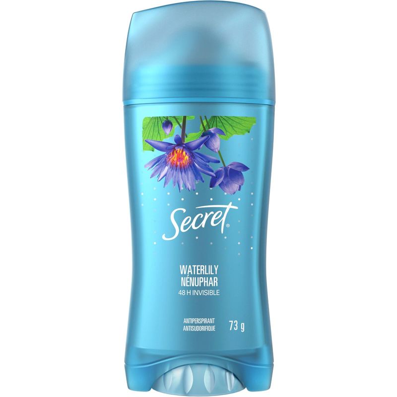 Stay fresh and dry all day with Secret Invisible Solid Antiperspirant and Deodorant in Waterlily scent. This 73g invisible solid provides 48 hours of odor control and wetness protection, making it the perfect choice for anyone who wants to stay unstoppably fresh.