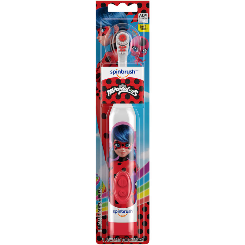 Introducing the Spinbrush Kids Battery Powered Toothbrush, the perfect way to get your kids excited about brushing their teeth. With its fun Miraculous Lady Bug design and new SpinFast Technology that spins 20% faster than ever before, kids will love brushing their teeth with this toothbrush.