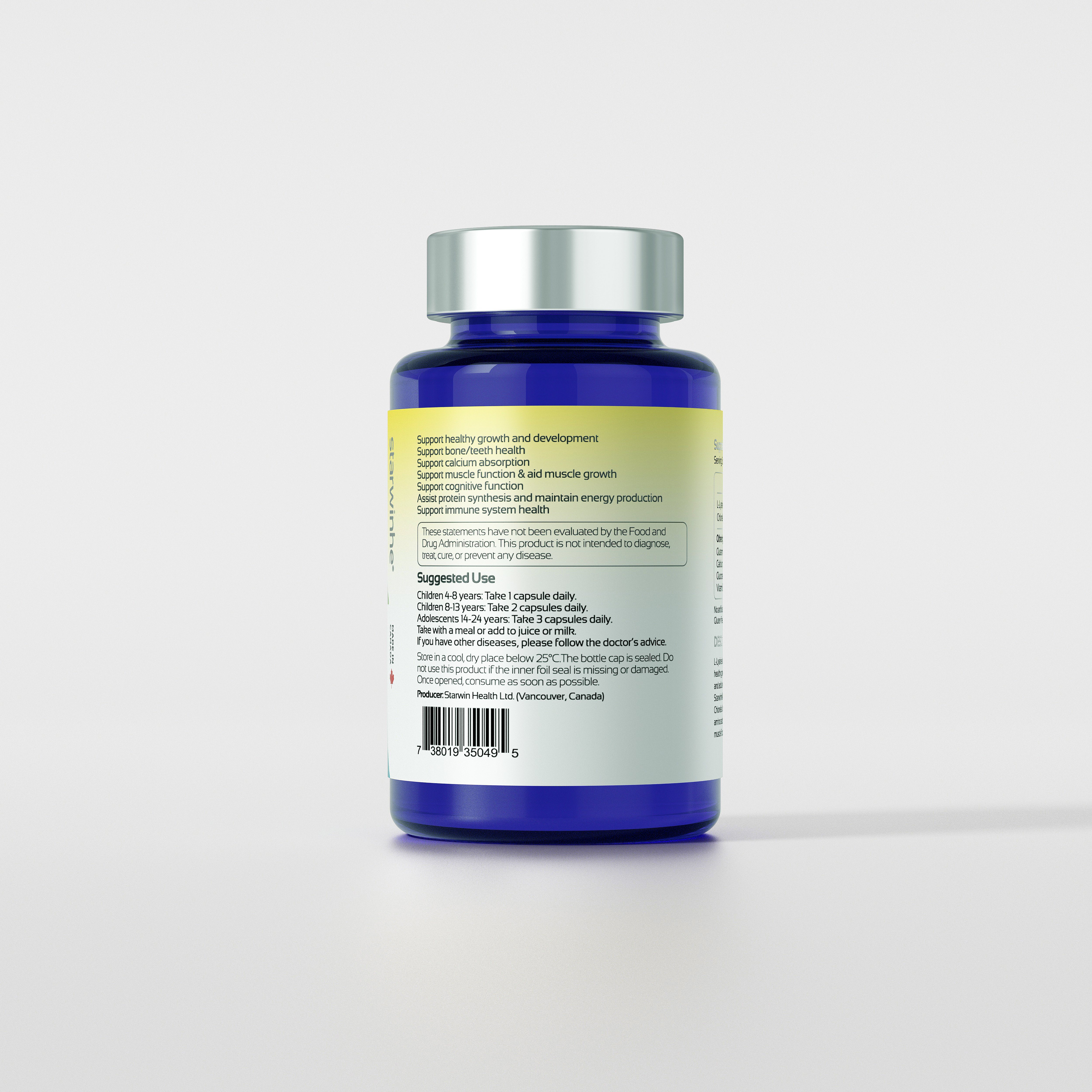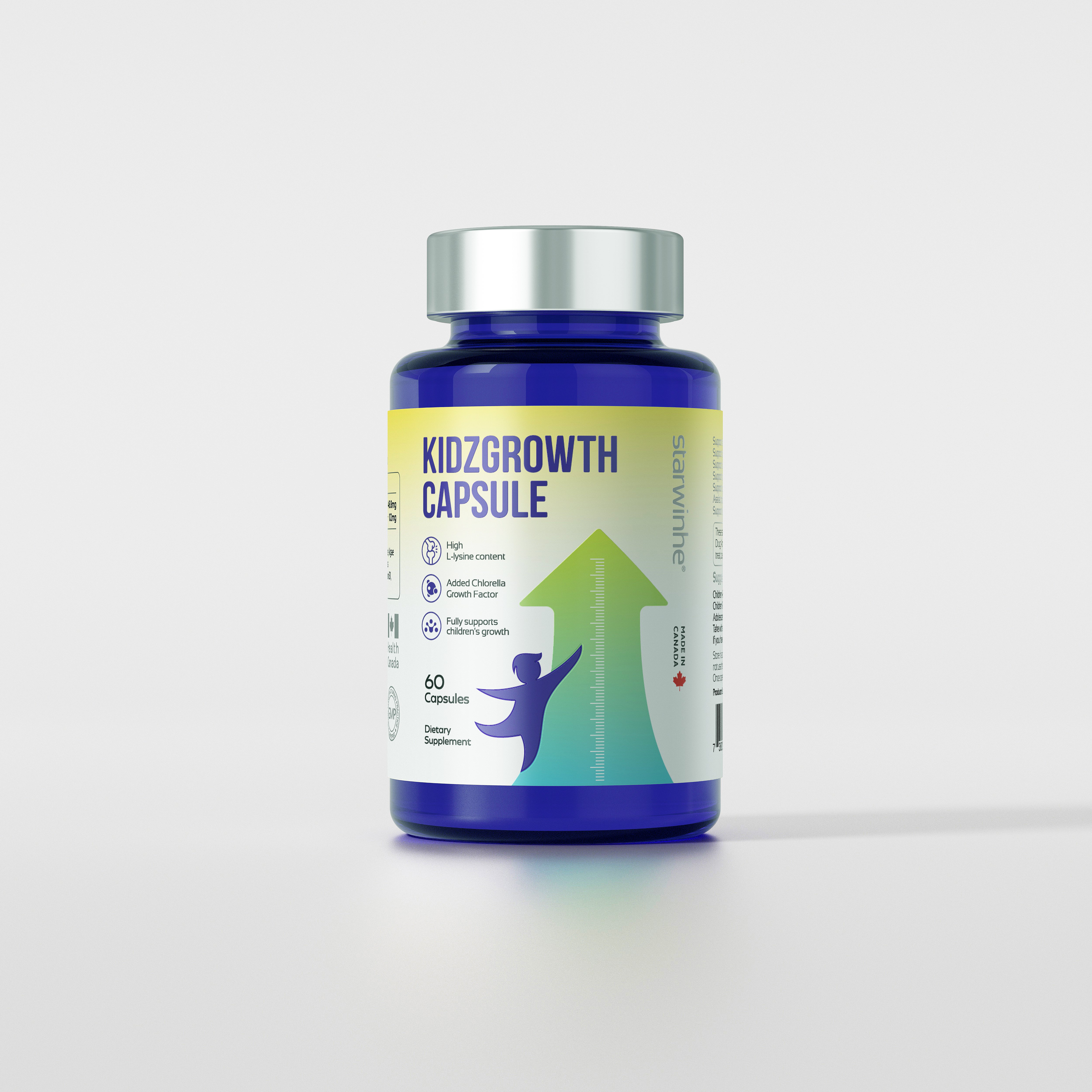 Starwinhe®️ KidzGrowth Capsule formulates L-Lysine with Chlorella Growth Factor, a variety of vitamins, and other amino acids to support bone health, calcium absorption, muscle function, and protein synthesis.