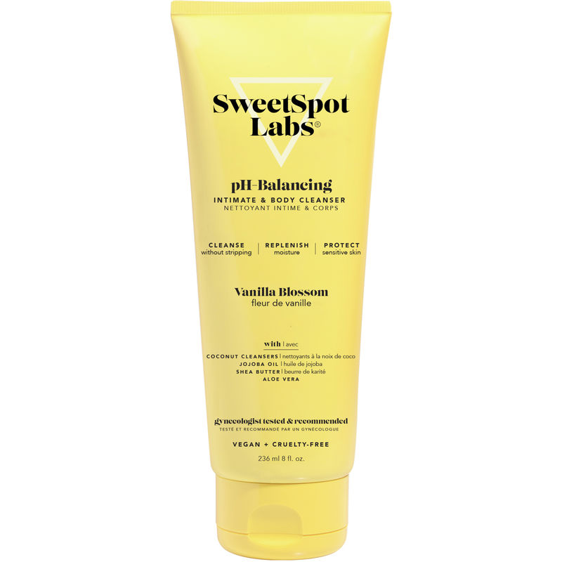 Introducing SweetSpot Labs pH-Balancing Vanilla Blossom Intimate & Body Wash, the perfect cleansing solution for your intimate and body needs. This sulfate-free wash is pH-balanced to the vulva, clinically proven non-irritating, and recommended by unbiased gynecologists. It is enriched with emollient oils and shea butter to nourish and replenish vital lipids and antioxidants, leaving your skin soft, smooth, and nourished. The low-fragrance, hypoallergenic, and planet-friendly packaging make it a must-have for your daily routine.