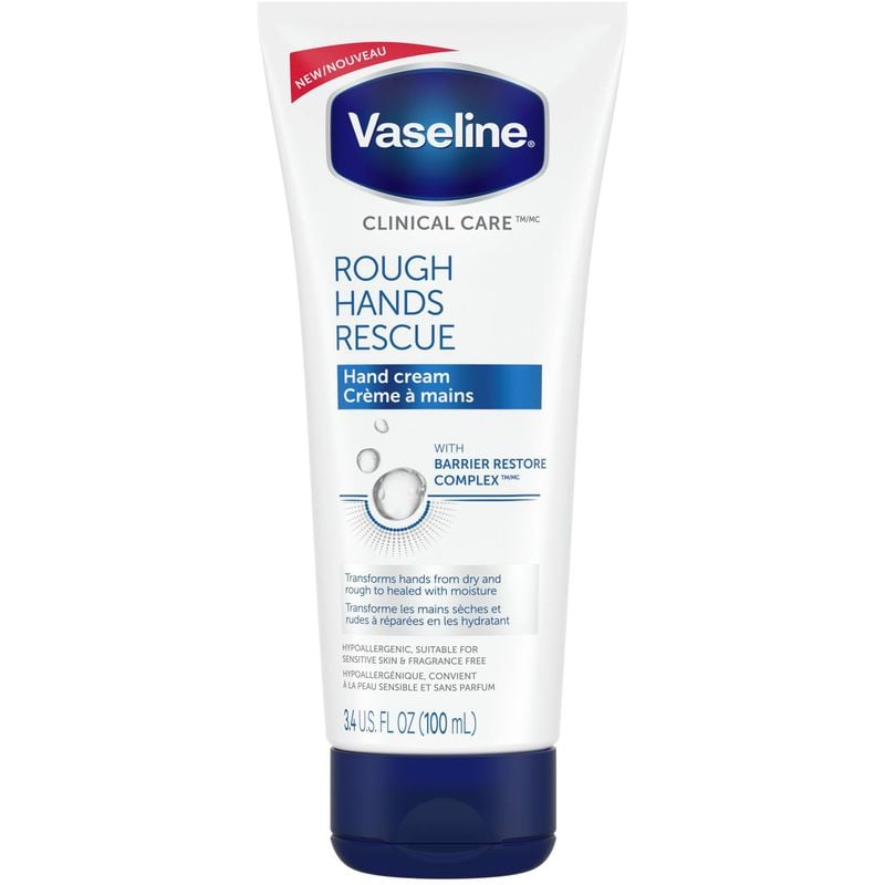 Say goodbye to dry, rough hands with Vaseline Clinical Care Rough Hands Rescue Hand Cream. Our clinically proven moisturizing formula delivers deep hydration to improve hard-to-heal dry skin in just 5 days. Enriched with Barrier Restore Complex, this hand cream combines three key ingredients that work together to strengthen the skin’s moisture barrier and protect it from exterior irritants. Glycerin delivers moisture, Vaseline Jelly locks in moisture, and pro-lipids replenish the skin’s barrier. This unique combination of deeply moisturizing ingredients makes Vaseline Clinical Care Rough Hands Rescue Hand Cream an effective hand moisturizer that offers fast relief for dry, stressed skin, restoring soft, healthy-looking skin quickly.