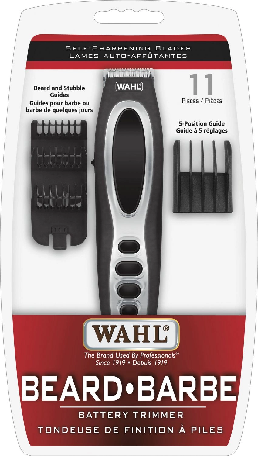 Introducing the Wahl Battery Beard Trimmer, the ultimate grooming tool for the modern man. With its self-sharpening precision ground blades, this trimmer ensures a clean and precise trim every time. Say goodbye to dull blades and hello to a perfectly groomed beard.